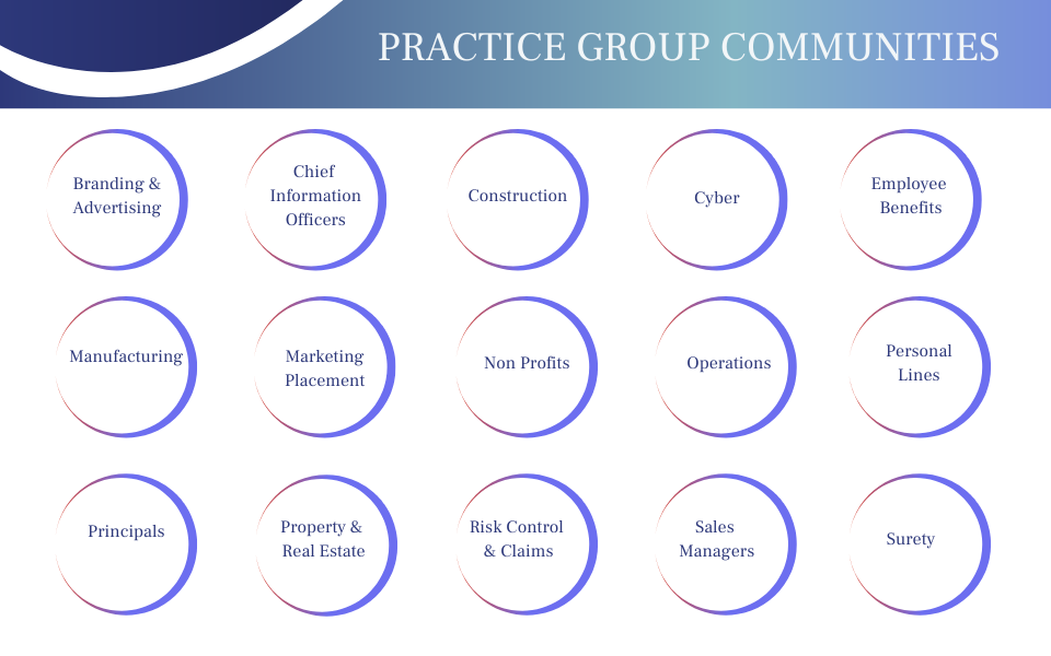 RiskProNet offers 15 practice group communities exclusively for agency members. Each community is designed to help members share ideas, collaborate, and exchange resources through features such as message boards, file uploads, link sharing, and more.